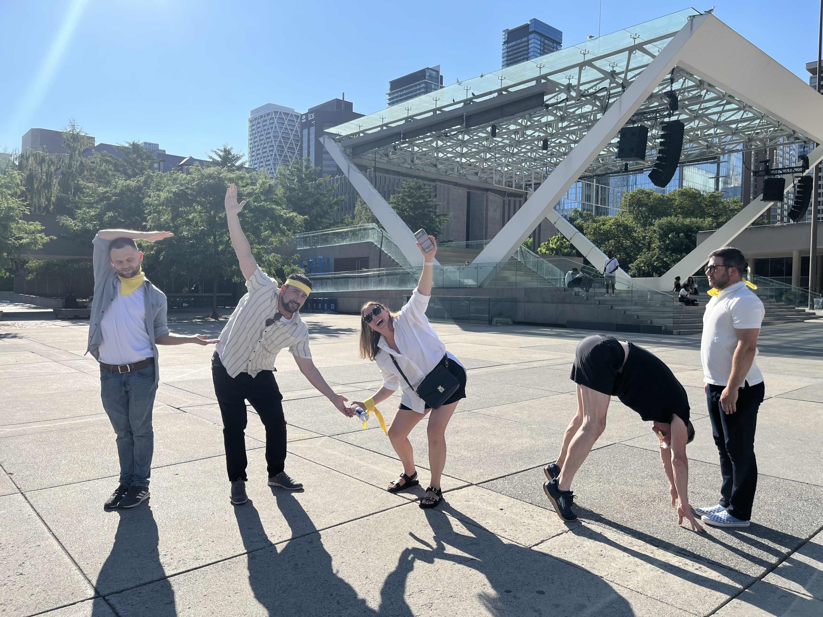 - Take a photo of your team, CN Tower and Roy Thompson Hall all in one shot.